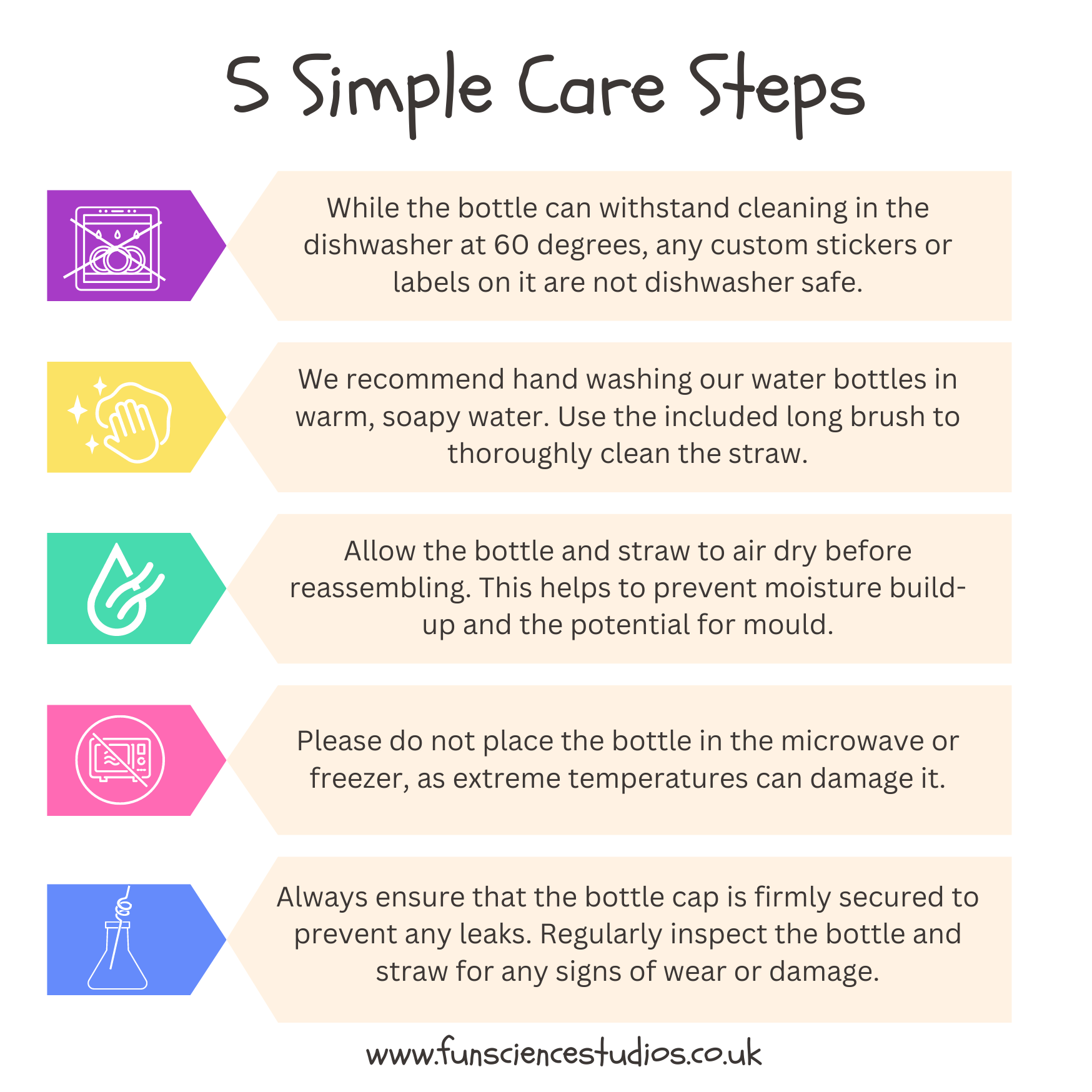 Bright and Colourful: Each bottle is topped with a colourful twist-on lid and comes with a matching curly straw, adding a pop of colour and excitement to every sip.